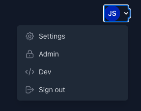 User dropdown menu